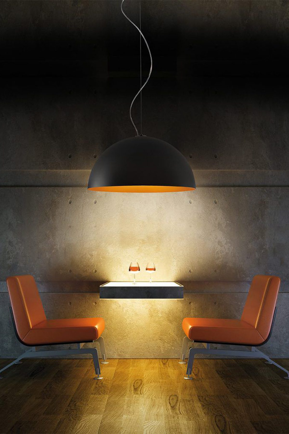 A contemporary dome-shaped pendant, Anke is crafted from turned aluminium and is available in five sizes. With its minimalist form and bold interior contrasts, it brings a modern statement to any residential or commercial space.
