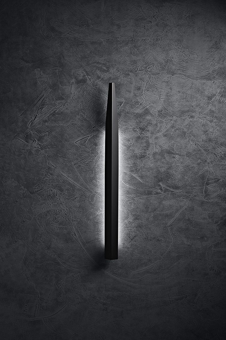 The fold series is designed for both commercial & residential applications. A tapering silhouette appearing to melt into its surroundings, minimal in its aesthetic. Fabricated from 1.6mm folded steel & finished in super-matt ace black. Fold is available as a linear pendant, wall & floor light.