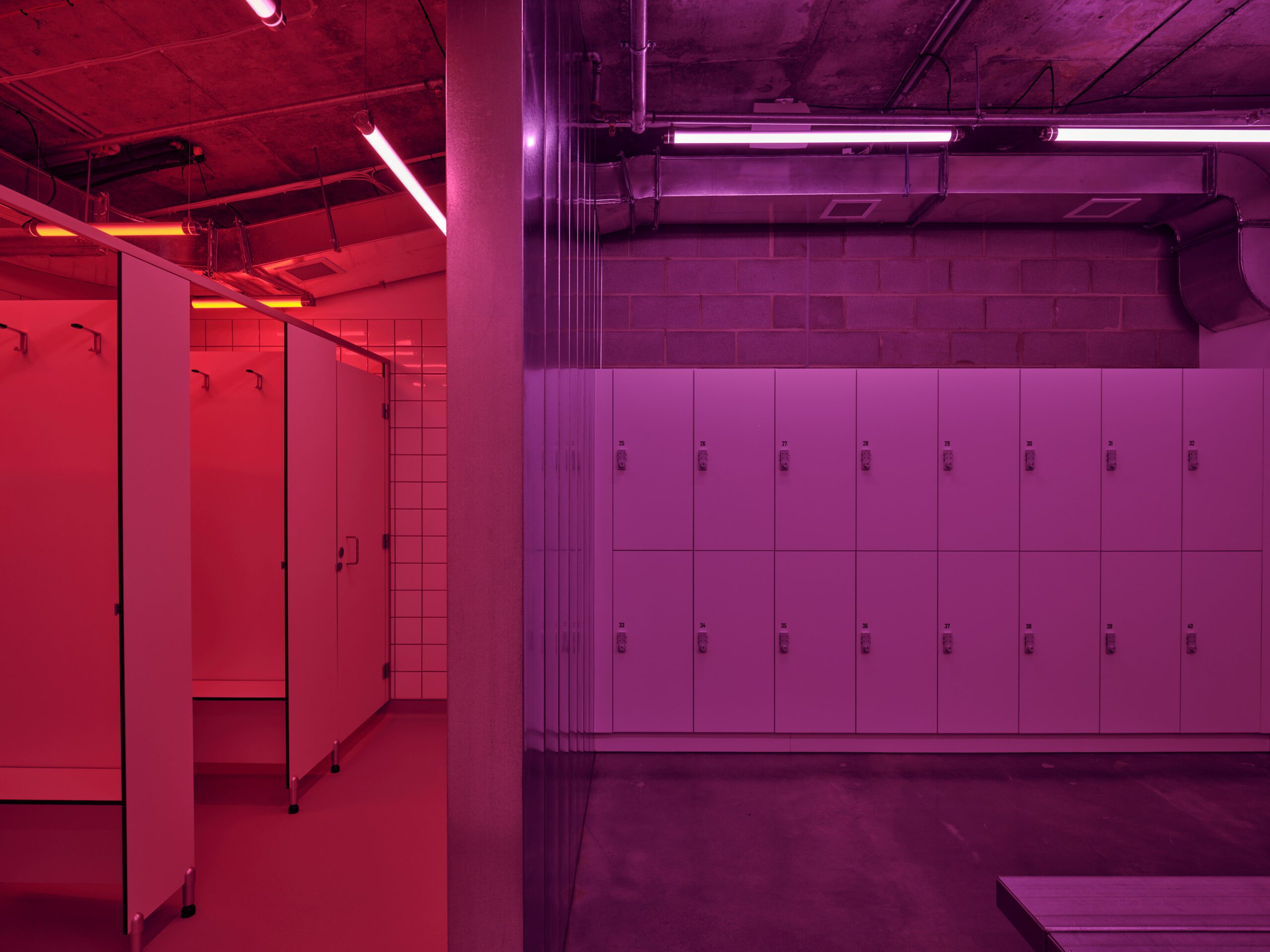 The gym has been designed as an immersive experience with lighting playing an integral component to the overall atmosphere. Tubo Mini is wall mounted and suspended throughout all common areas and amenities, wirelessly controlled via the Casambi app.
