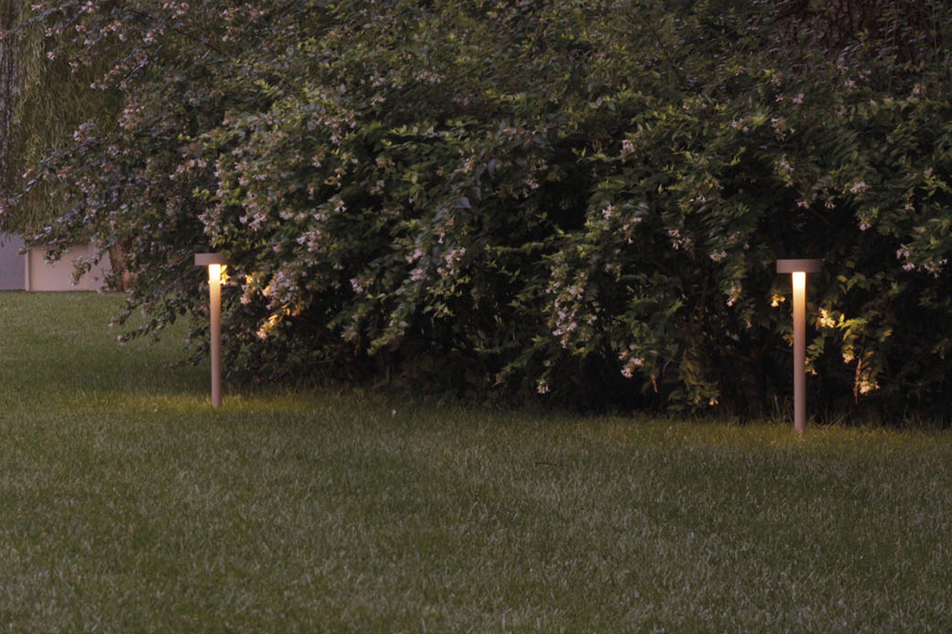 Matita Square has a compact form with a solid square pole (h.160mm, h.300mm) that is cut away at the top. Light is emitted from beneath the square head section, and the conical reflectors can be painted white or black.