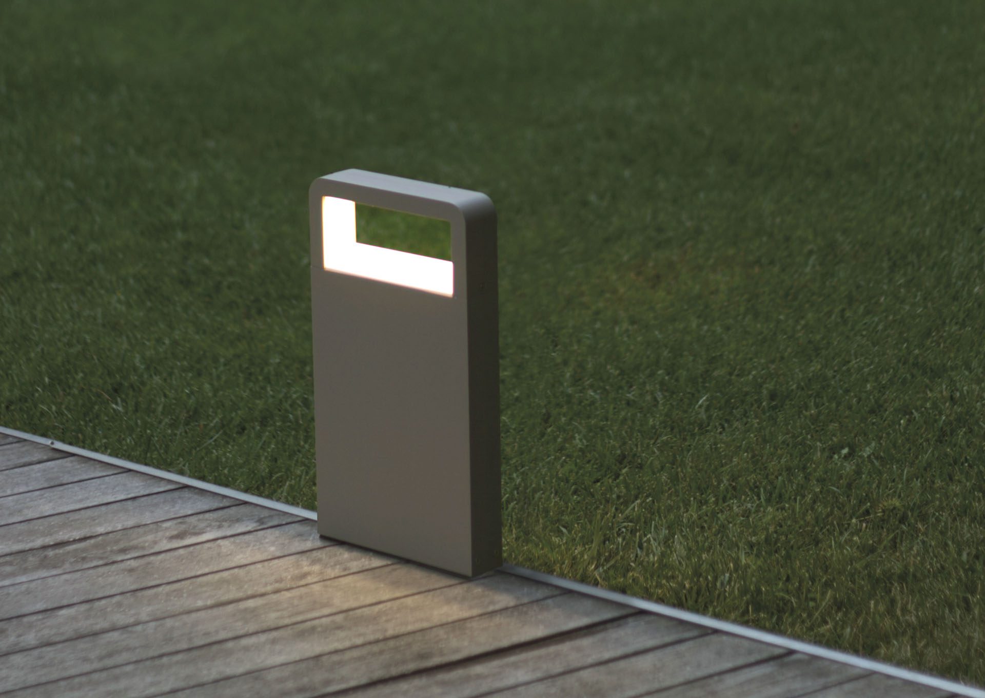 A sleek, unobtrusive light, Zeus has a slim rectangular form with light emitted from a small lip at the top. The bollard is available in two sizes (h.115mm, h.300mm).