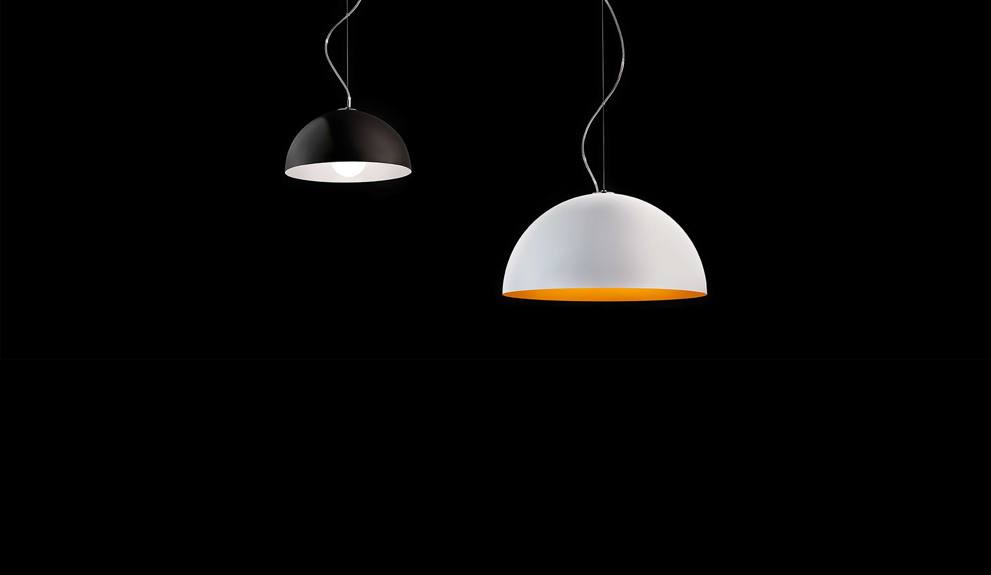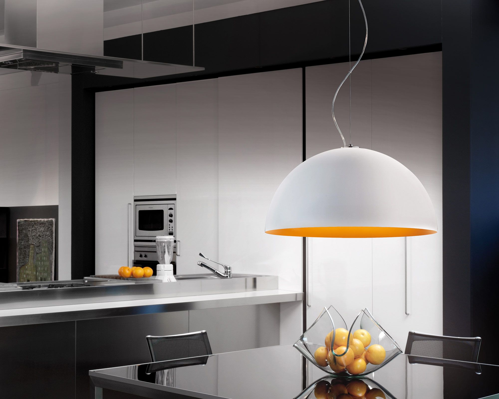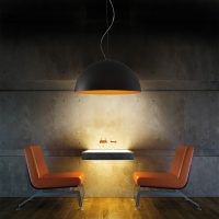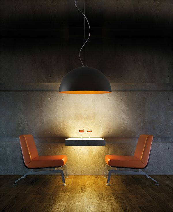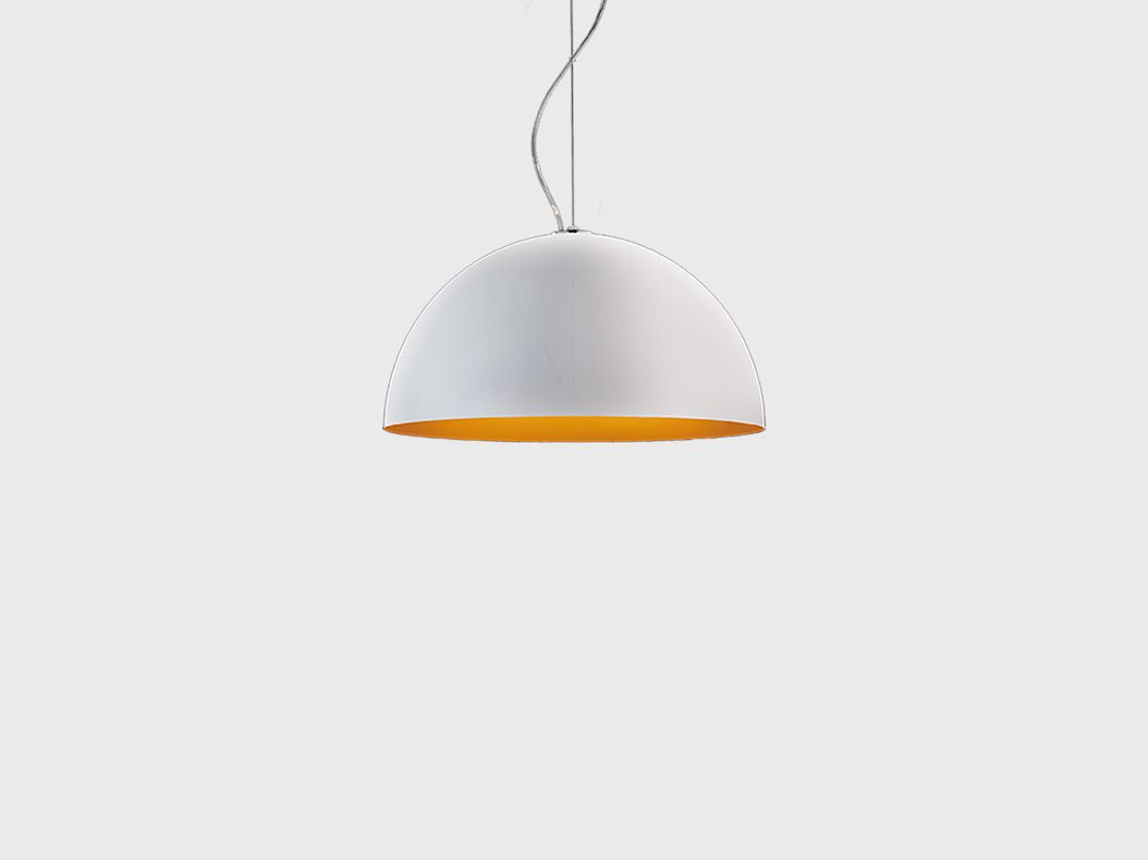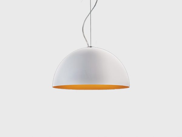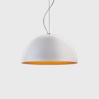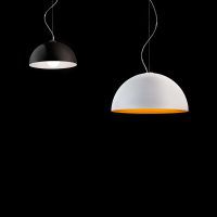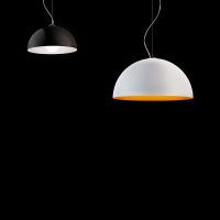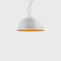 A contemporary, dome shaped pendant Anke is made of turned aluminium and available in two sizes. With varying colour combinations of matt black with white or orange and matt white with white or orange, Anke is a modern addition to any residential space.