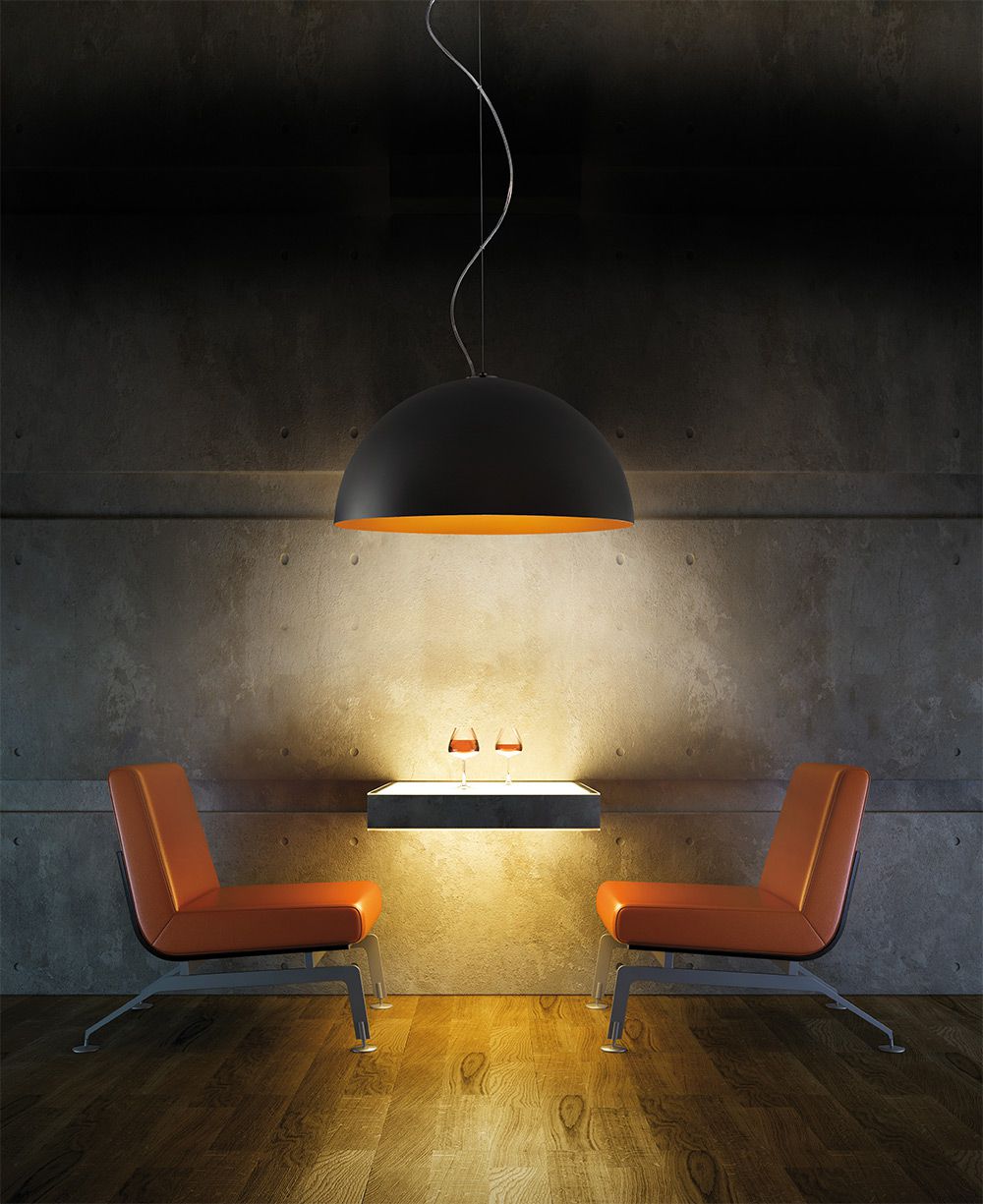 A contemporary dome-shaped pendant, Anke is crafted from turned aluminium and is available in five sizes. With its minimalist form and bold interior contrasts, it brings a modern statement to any residential or commercial space.