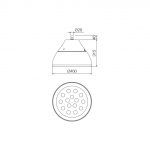 Material: Aluminium body, polished aluminium reflector and clear polycarbonate lens with glare shield
