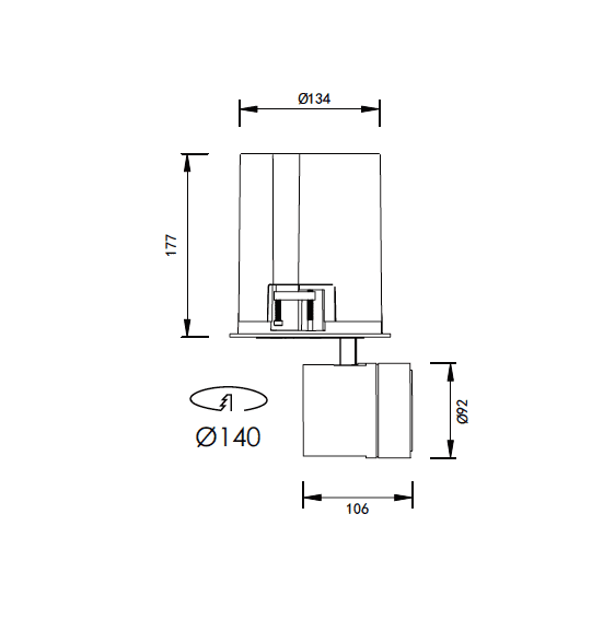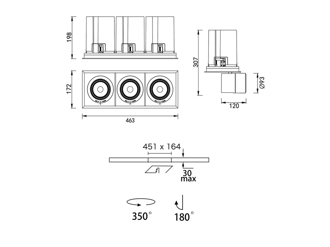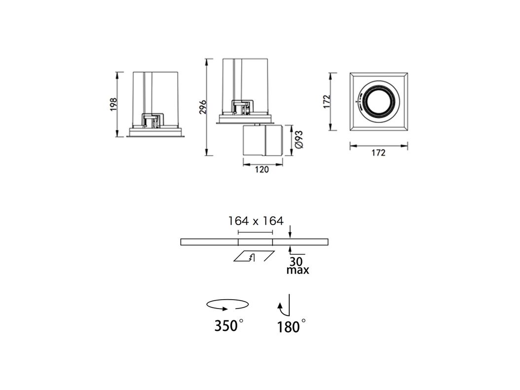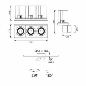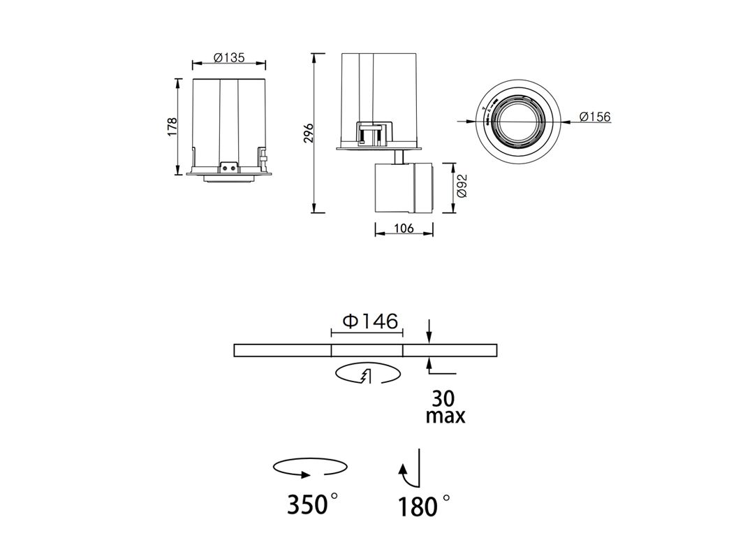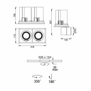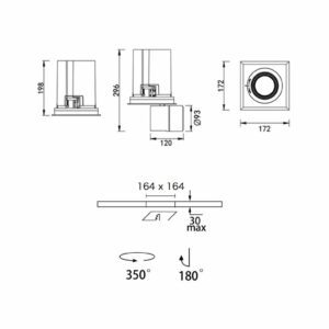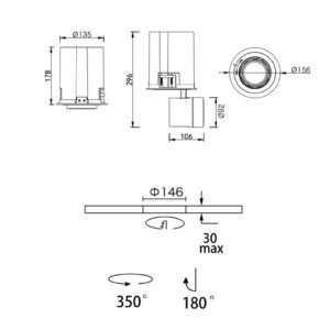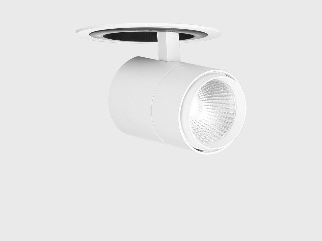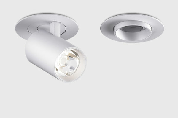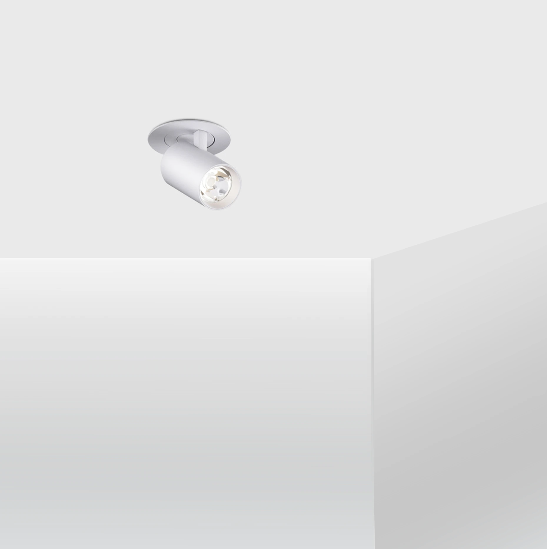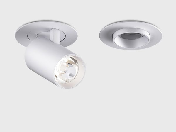 Dotto is an adjustable LED downlight which also offers a dual function as a semi-recessed spotlight. The central component can either be pushed up into the housing which is recessed into the ceiling or pulled out acting as a spotlight. It is has 350° rotation and 180° adjustability.