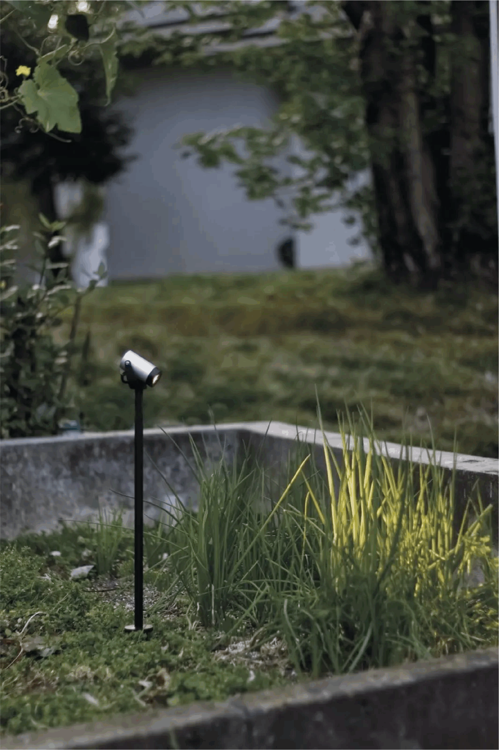 Dx Spike offers a compact and versatile outdoor lighting solution, combining the discreet design of the Dx projector with a practical in-ground spike mount.