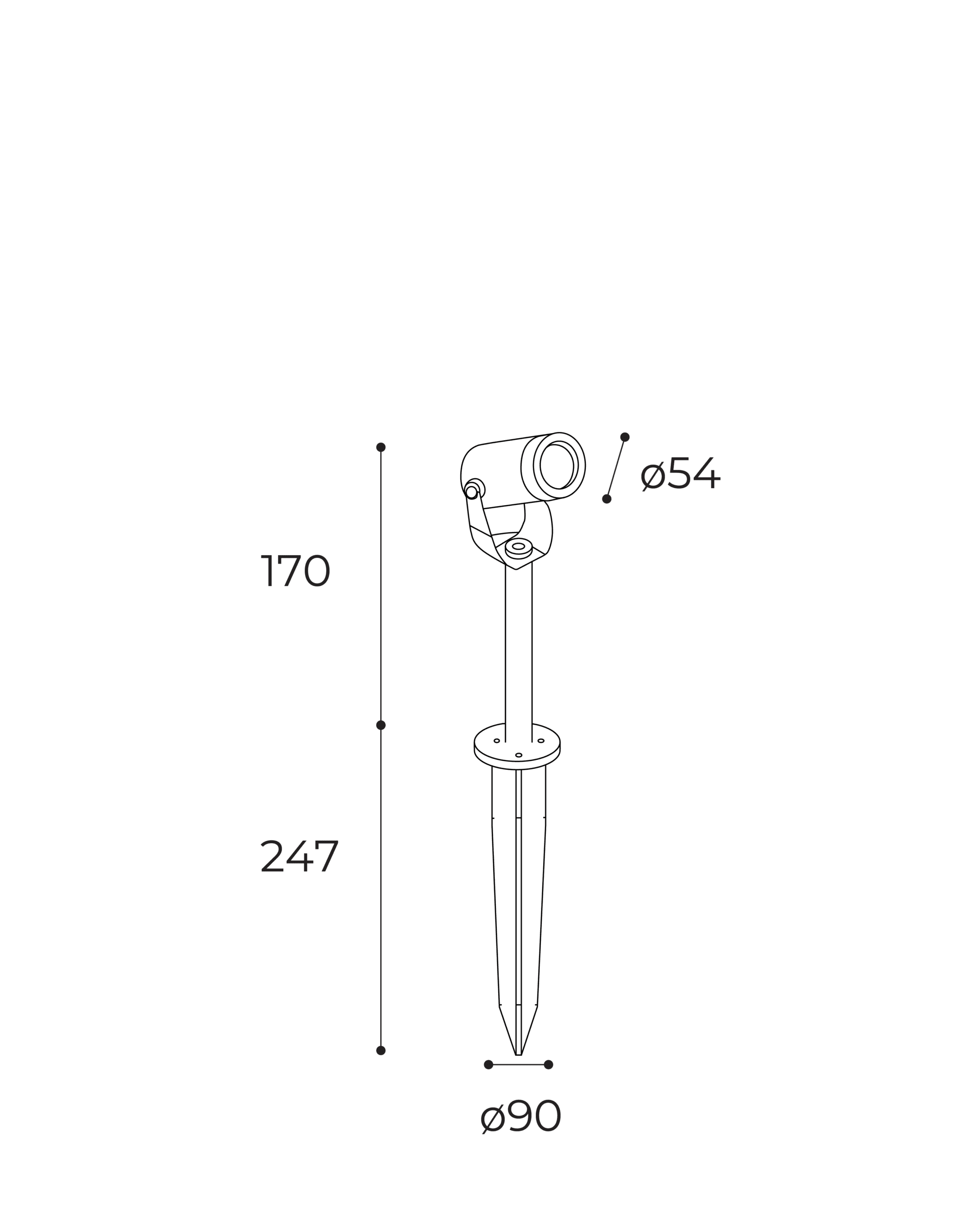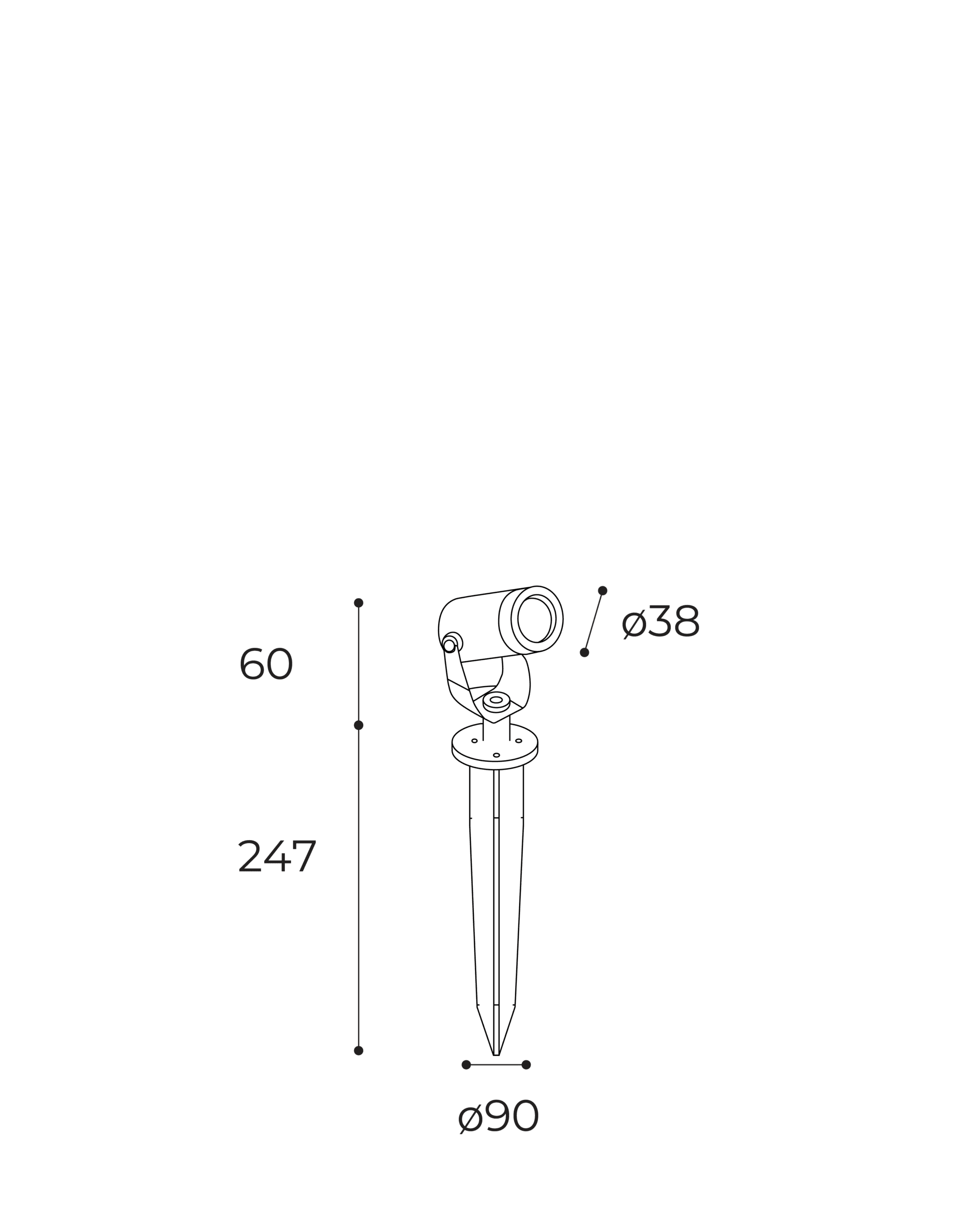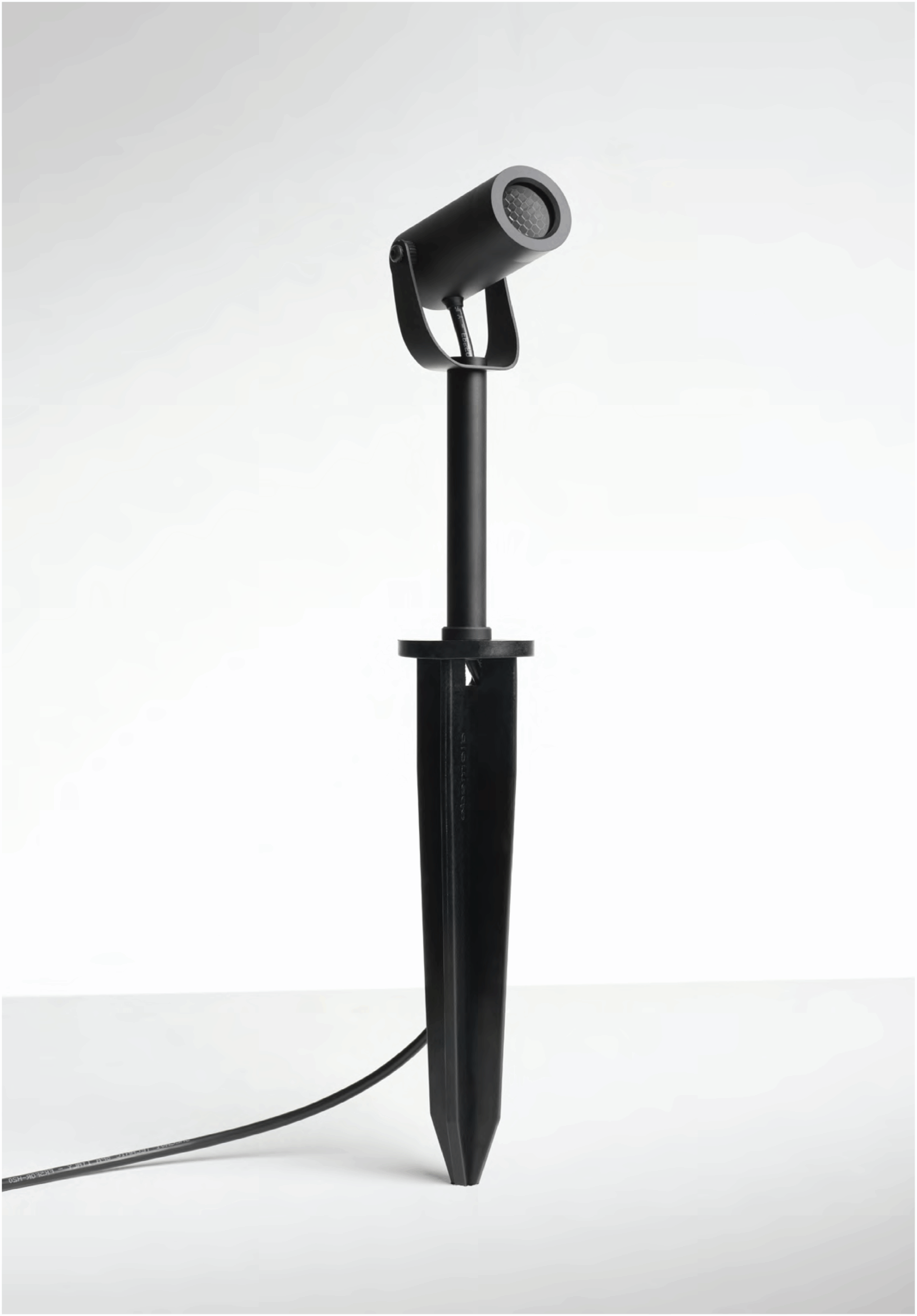 The anodised finish ensures durability and seamless integration into natural and built environments, while the spike allows for flexible, reposition-able installation without the need for permanent fixtures.