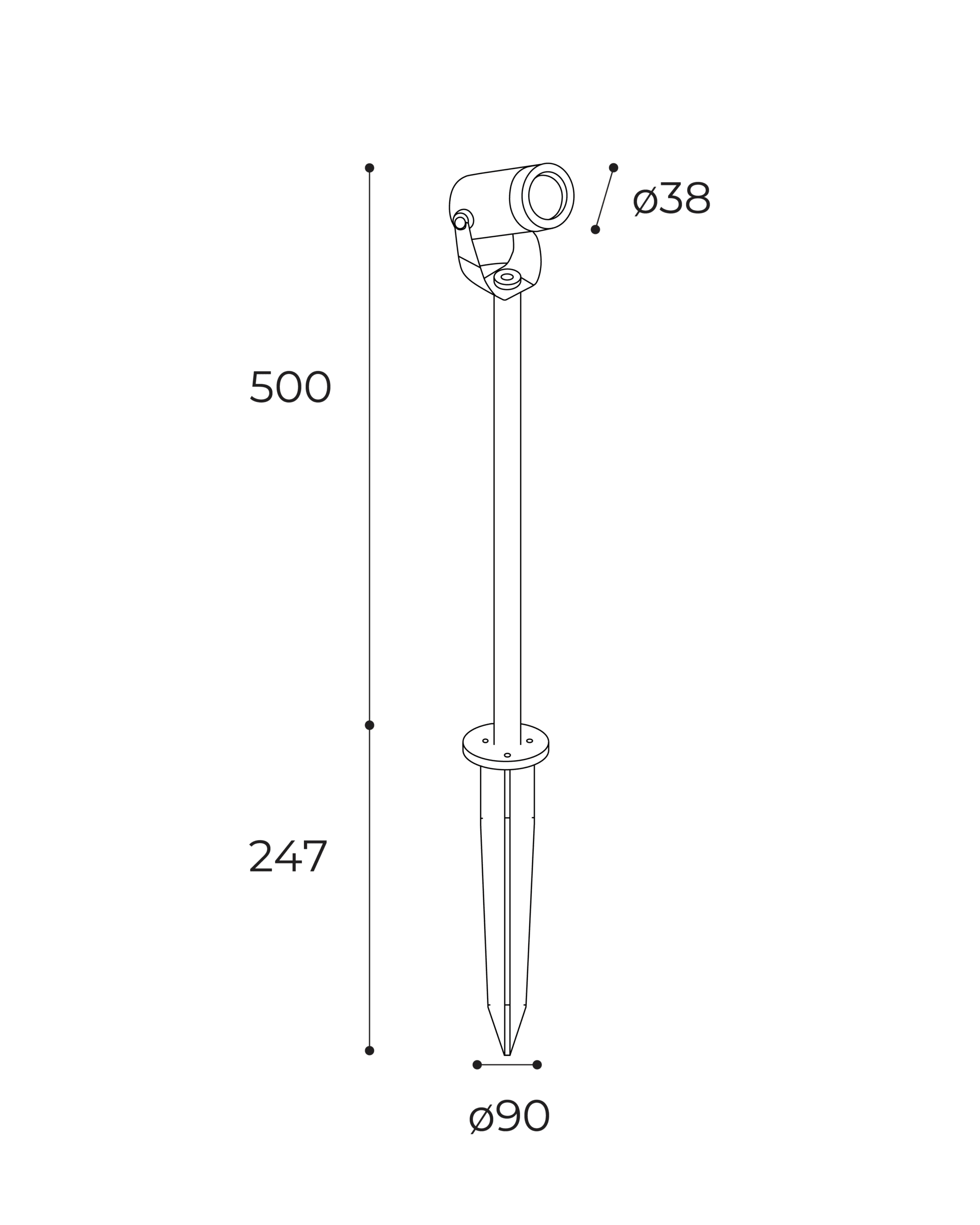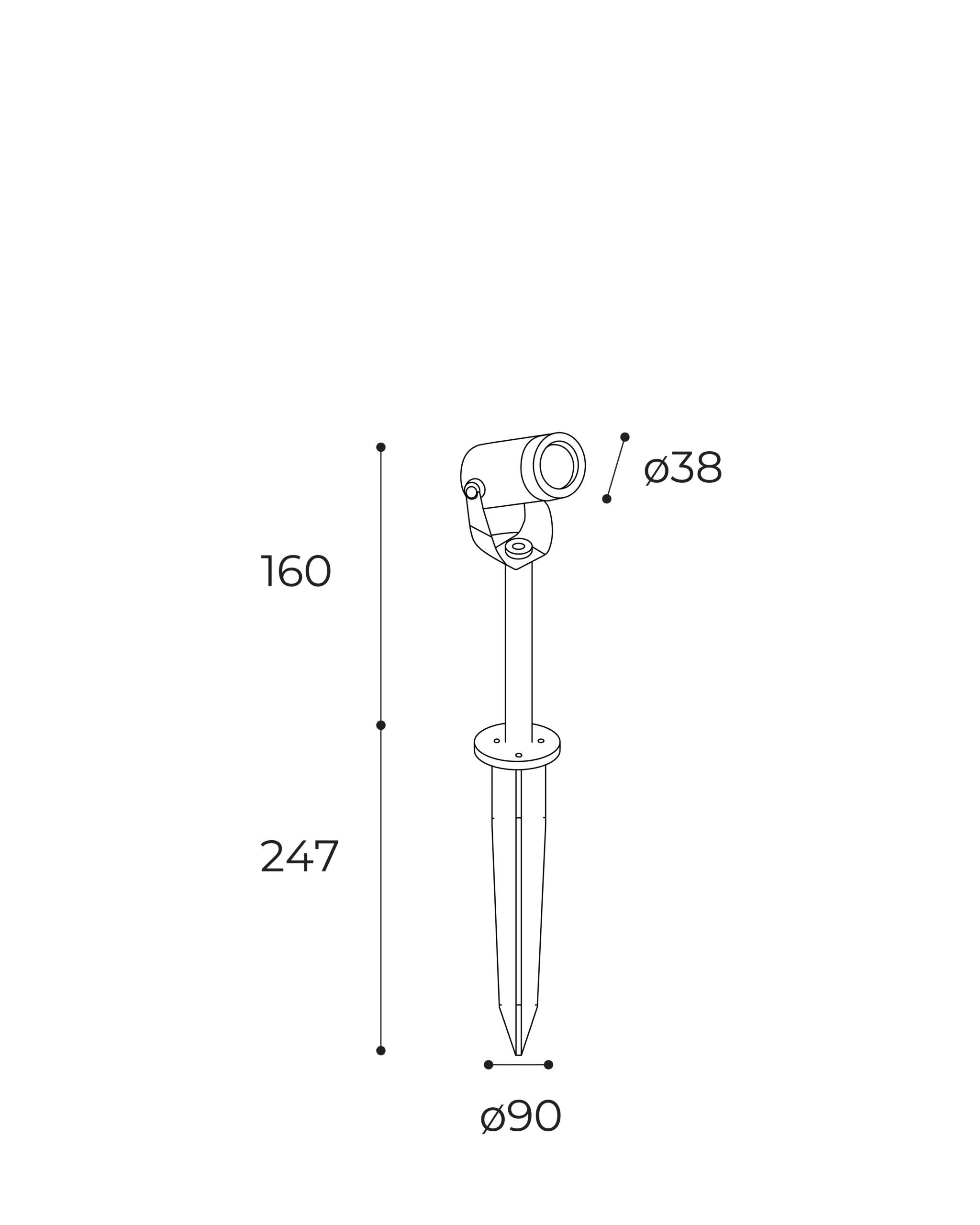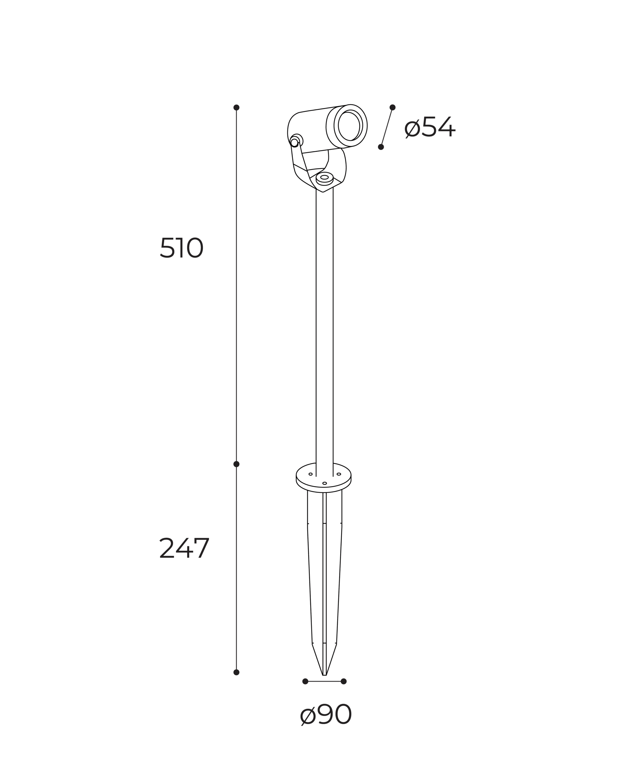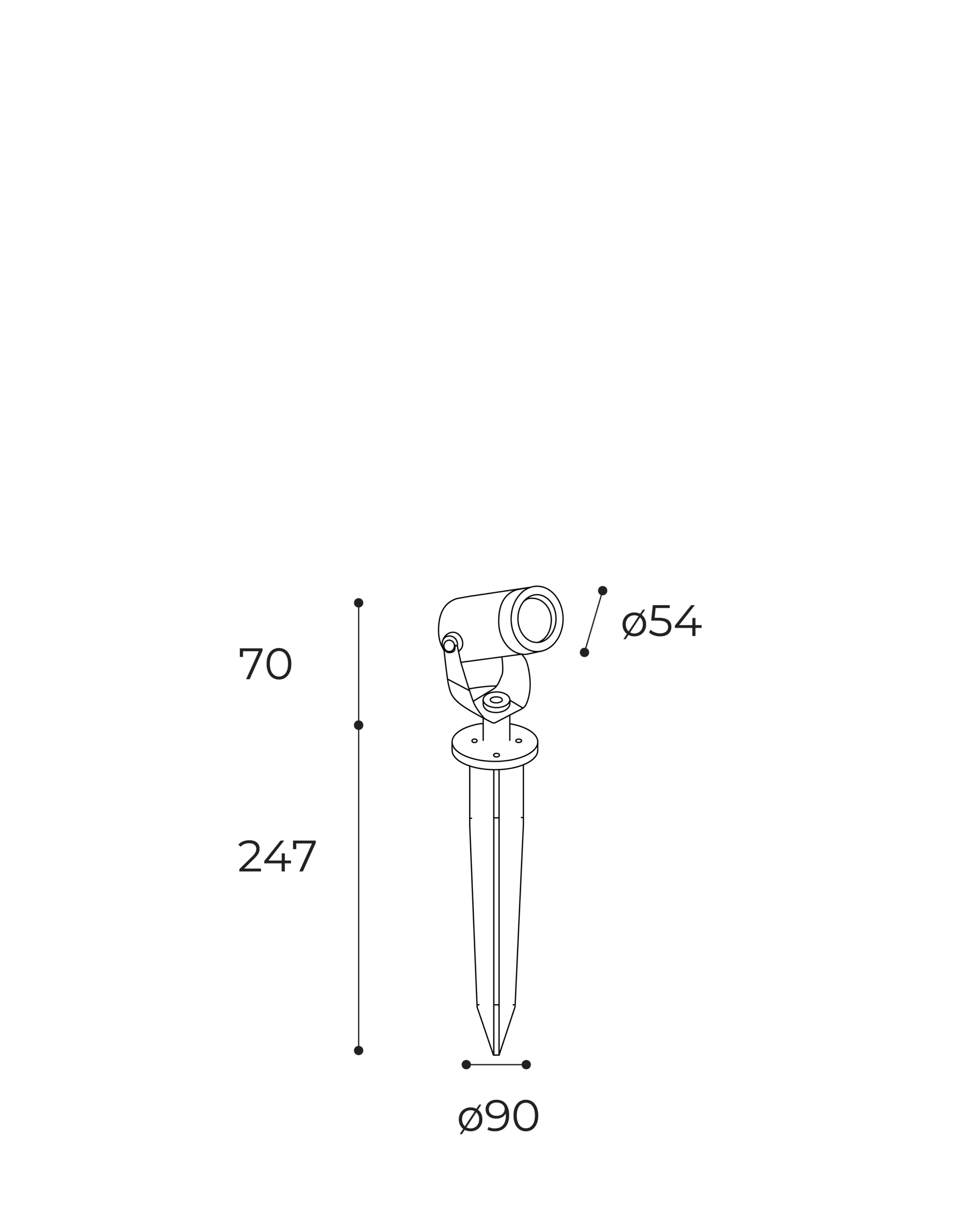 The anodised finish ensures durability and seamless integration into natural and built environments, while the spike allows for flexible, reposition-able installation without the need for permanent fixtures.