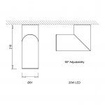 Elle features a two part cylindrical shaped housing in die cast aluminium, specular reflector with anti-glare lens and integral power supply with standard dimming for the 13W and optional dimming for the 20W version. As a ceiling or mounted fitting it can also be used as a directional spotlight. The Elle is a versatile fitting that is used in Residential, Retail, Hospitality and Commercial projects.
