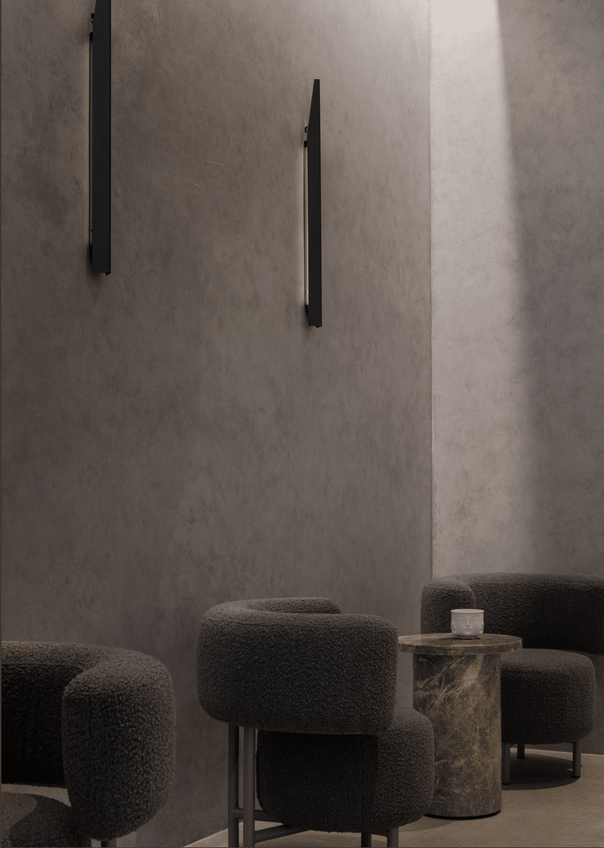 The fold series is designed for both commercial & residential applications. A tapering silhouette appearing to melt into its surroundings, minimal in its aesthetic. Fabricated from 1.6mm folded steel & finished in super-matt ace black. Fold is available as a linear pendant, wall & floor light.