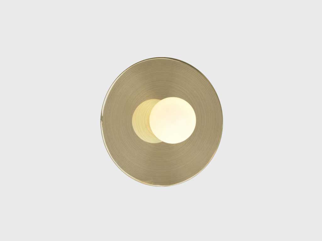 Paying homage to the artist of the same name, Giotto is a sculptural wall luminaire featuring a circular aluminium disc and a central opal blown-glass diffuser that emits soft, 360° radial illumination.