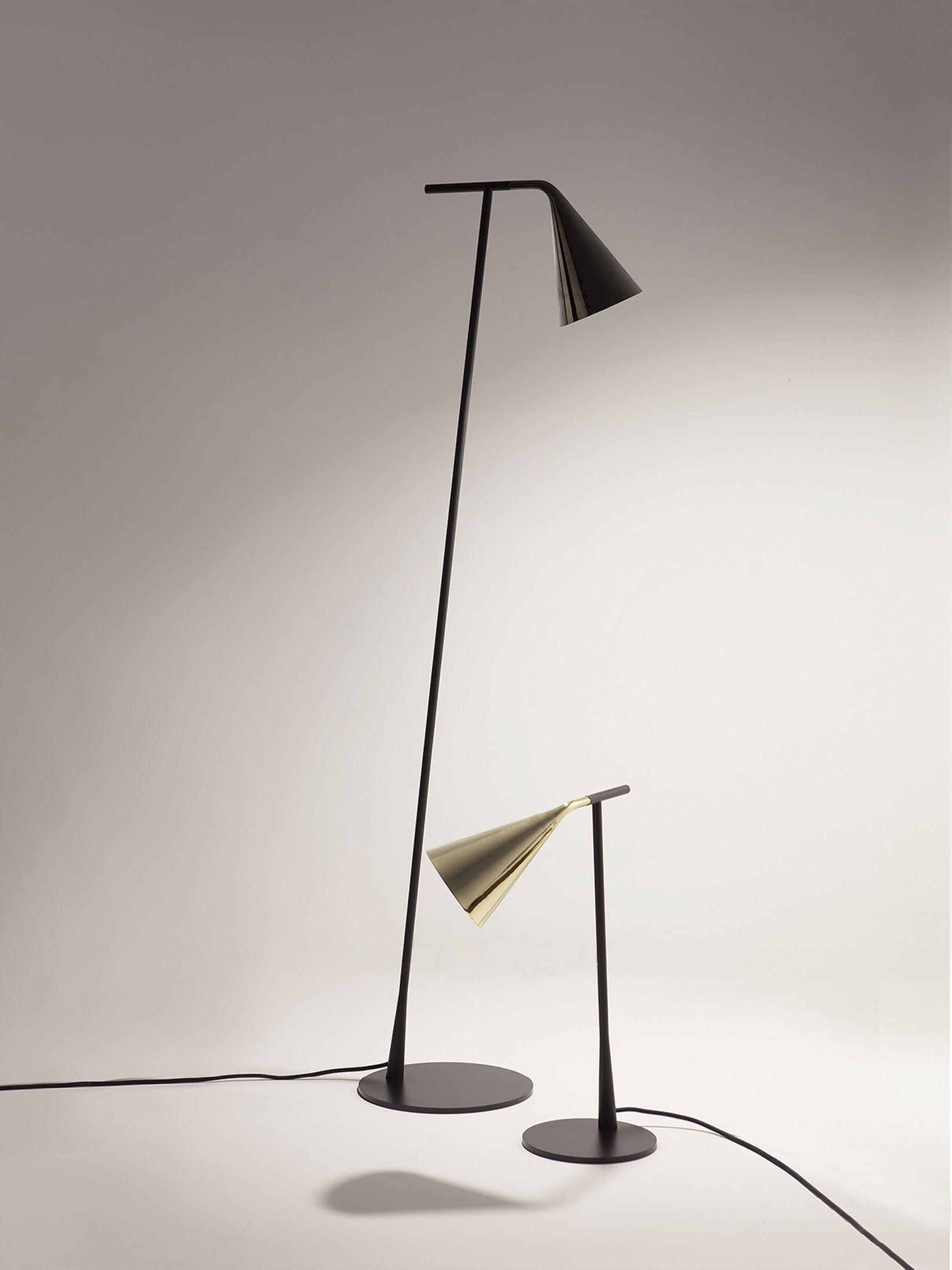 A new formal and material interpretation of the conical diffuser is the main feature of GORDON lamps. The essential and refined aspect with a strong character that is conferred by the shape of the brass casting; these practical and versatile lamps are suitable to be used in different environments, from the domestic to the working one as in the commercial spaces and ‘hospitality’.