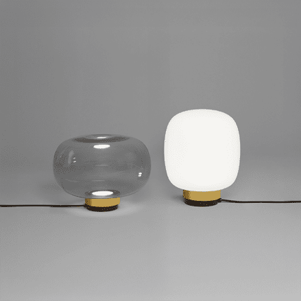 Collection of lamps inspired by the classical shapes of Murano diffusor usually used as decoration anywhere in a house; elegant spherical cruet apparently fragile yet very robust and functional. These lamps can have the connection in galvanic copper, brushed brass or painted, while the diffusor is made by blown glass opal white glass or fumè with harmonious and decorative shapes.