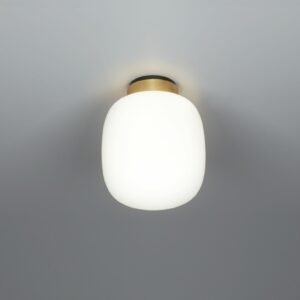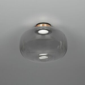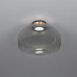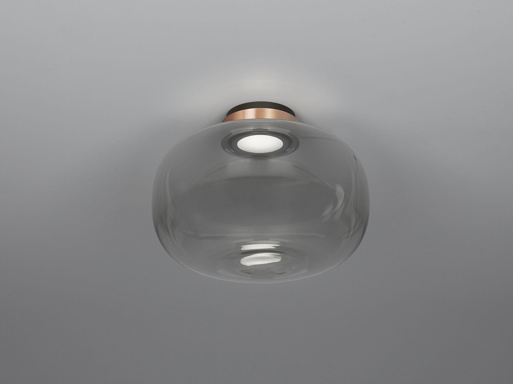 Collection of lamps inspired by the classical shapes of Murano diffusor usually used as decoration anywhere in a house; elegant spherical cruet apparently fragile yet very robust and functional. These lamps can have the connection in galvanic copper, brushed brass or painted, while the diffusor is made by blown glass opal white glass or fumè with harmonious and decorative shapes.
