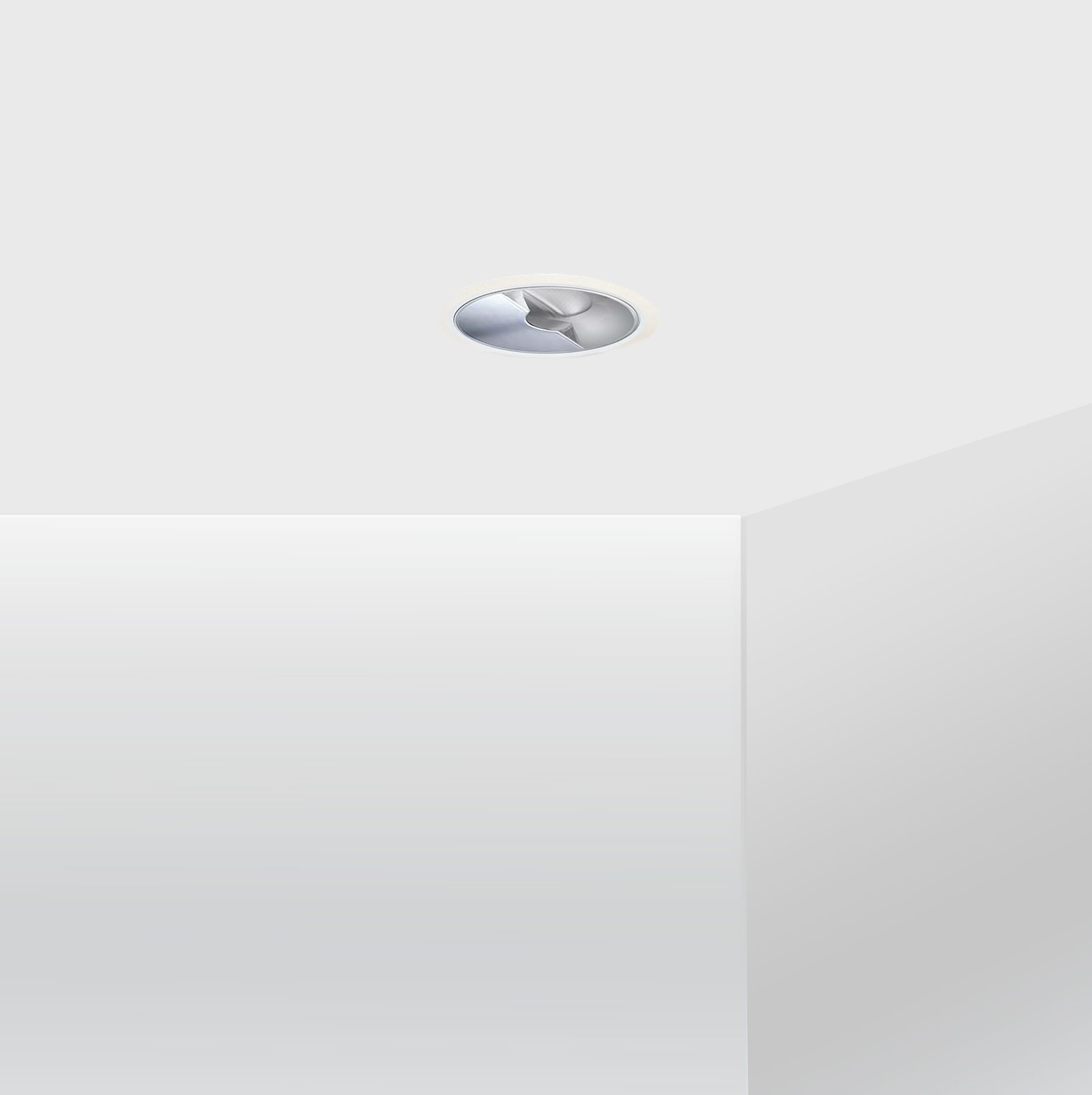 Leo is a recessed,trimless downlight.  The light source is recessed deep into the fitting creating a seamless low glare luminaire.  The fixture comes complete with a recessing kit allowing the fitting to be installed and the painting and plastering to be completed with ease.