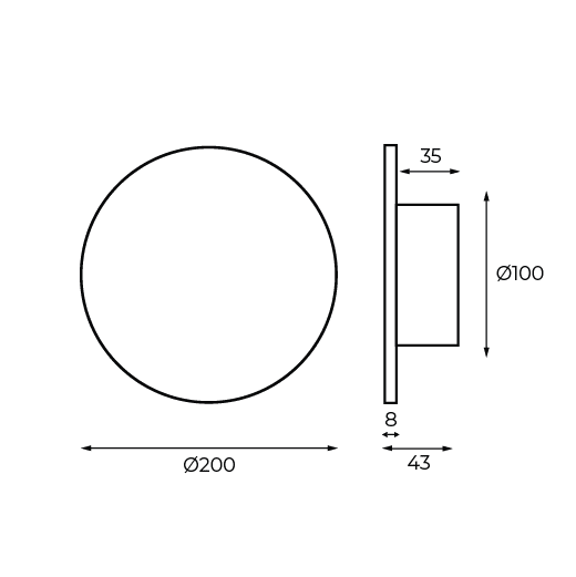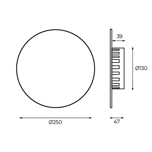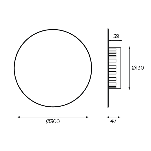 Light Source: LED Ø150mm 7W, Ø200mm 12W, Ø250mm 18W, Ø300mm 24W | 3000K