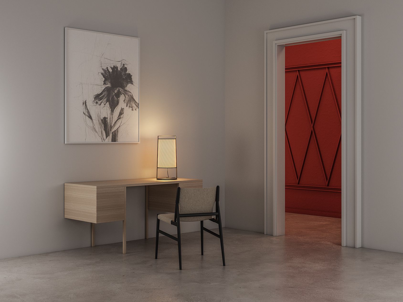 Collection of lamps revisiting traditional Japanese lanterns, characterized by a minimal and elegant style and available in four versions for any environment, floor (in two varieties) or wall and table. The structure is made by metal painted with epoxy powders, with white or black mesh lampshades. Lightness, minimalism and essentiality are the main traits of this collection.