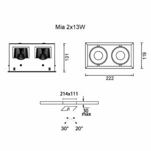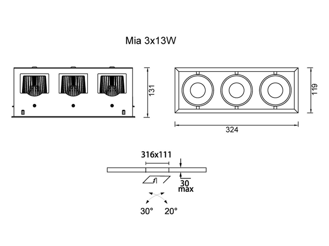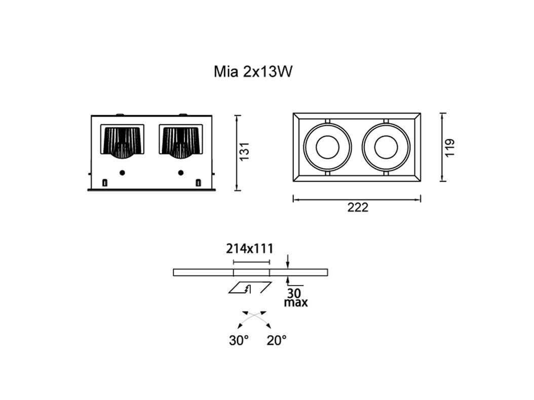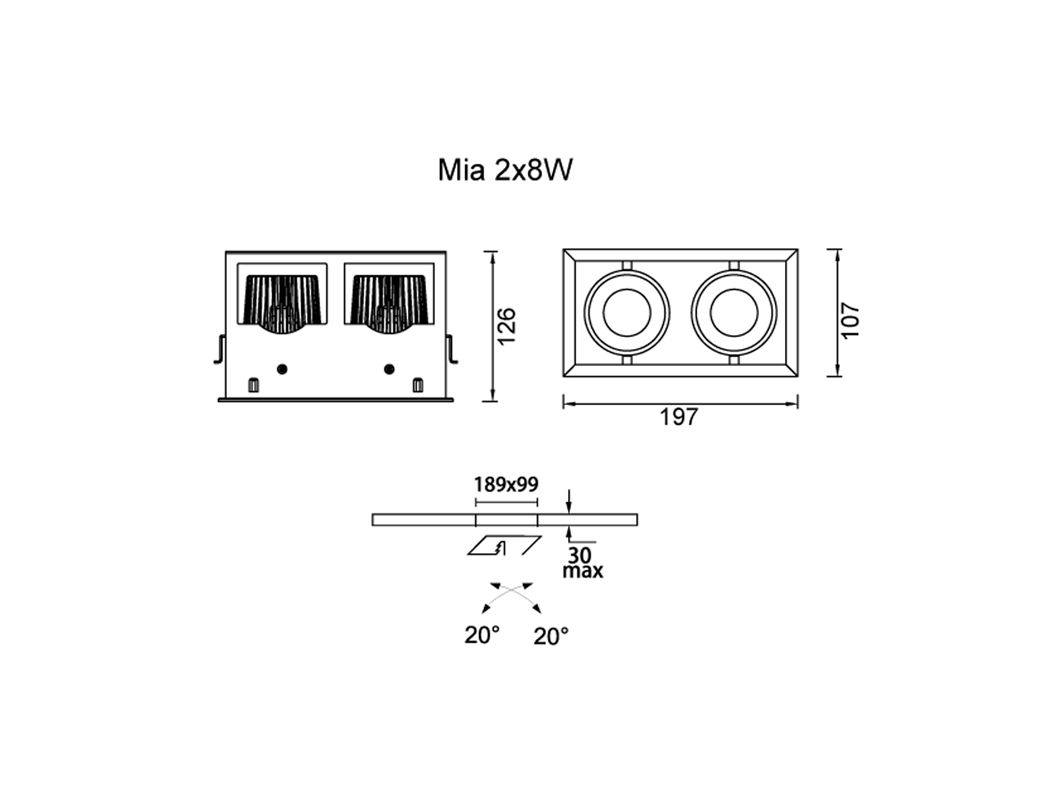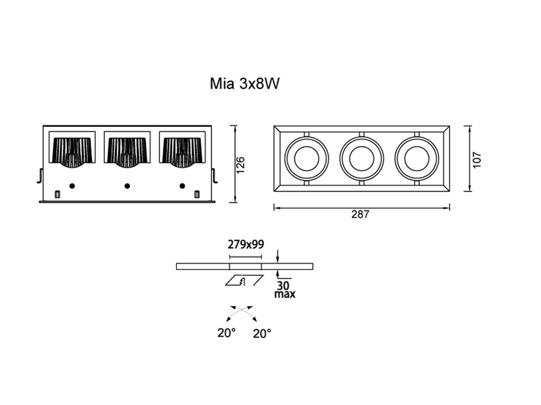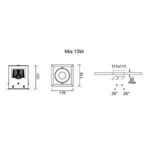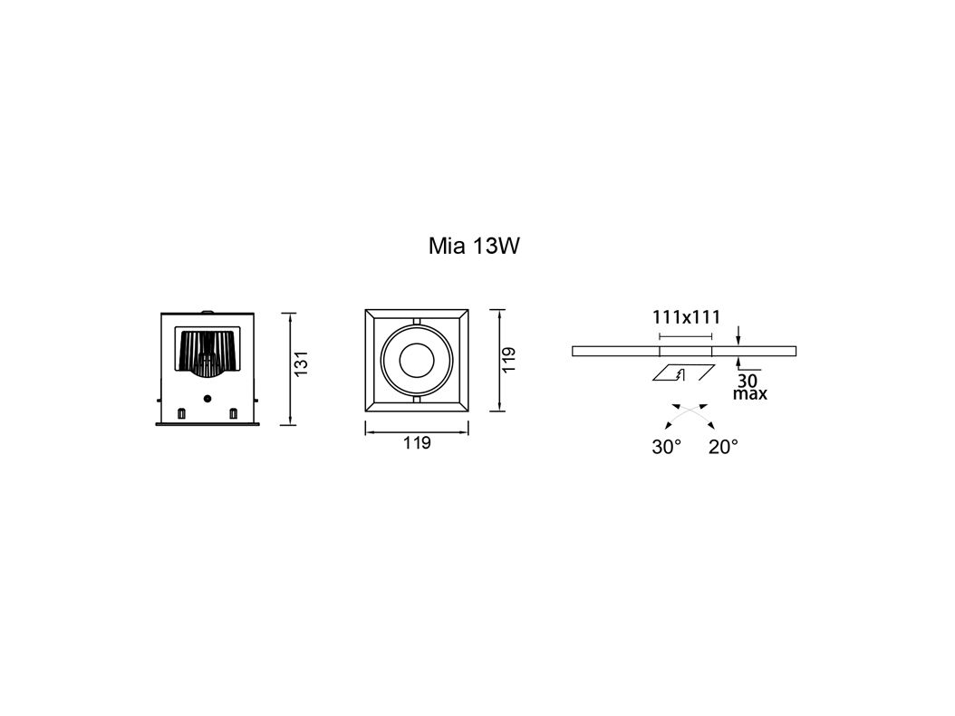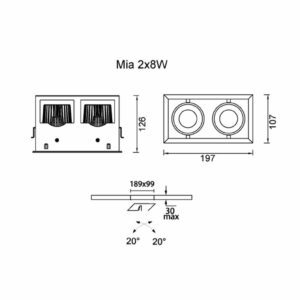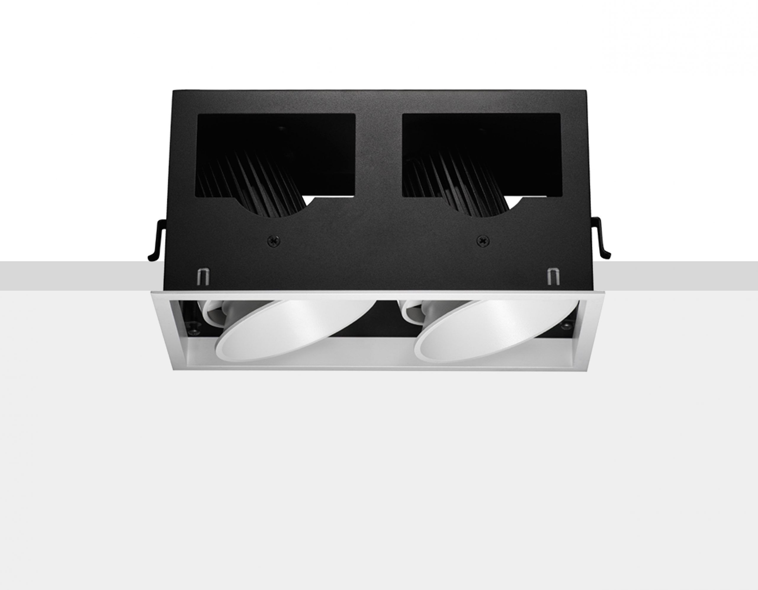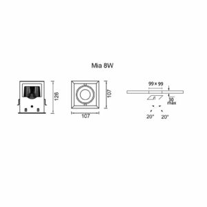 Mia is a range of LED down lights fixed into a recessed mounting box with die cast aluminium trim. The highly efficient and powerful LED module is set back into the luminaire housing. Mia is available in single, dual or triple configuration. Its versatility, clean trim and adjustable light source it is a popular product of choice for commercial and retail projects.
