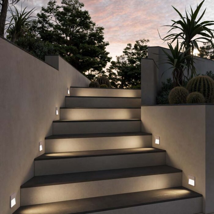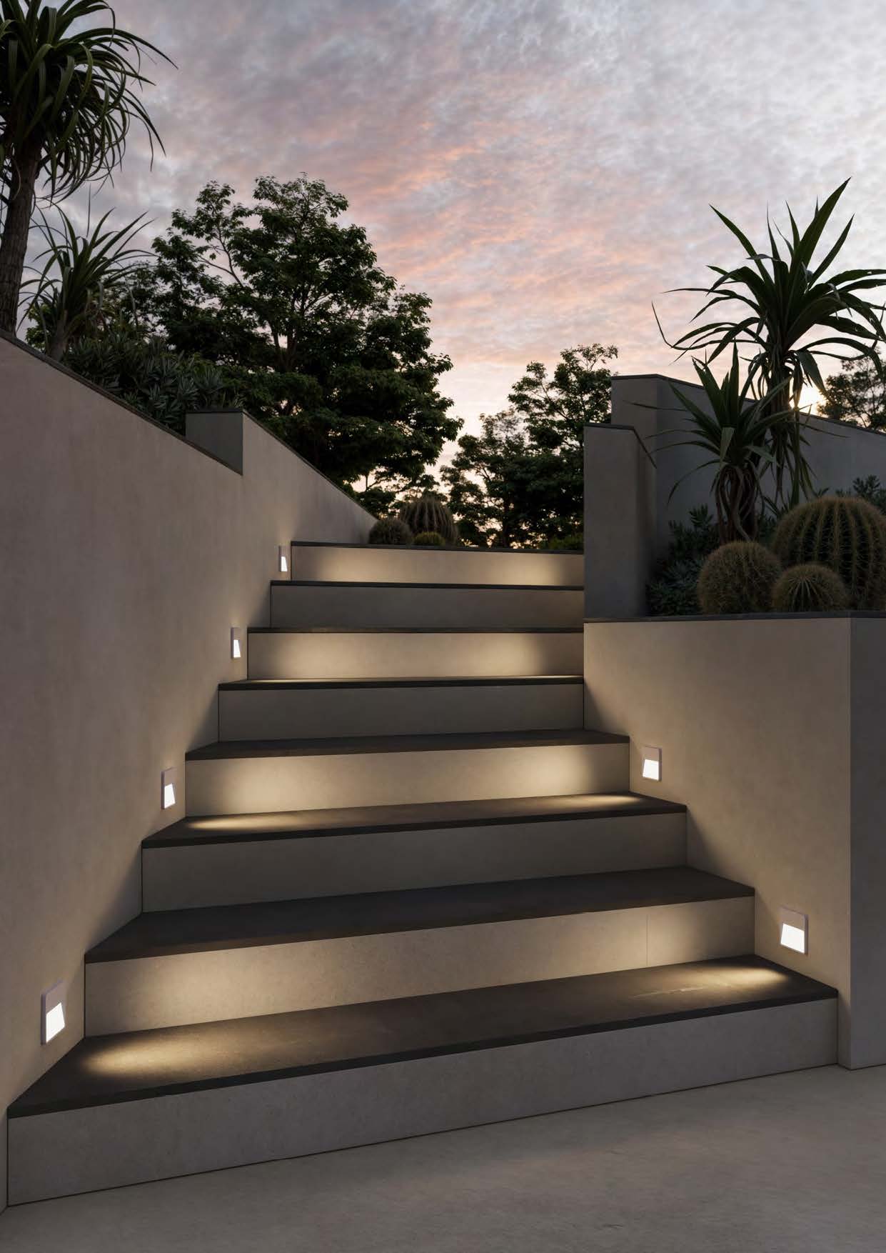 A sleek, rectangle step light crafted from die-cast aluminium, designed for surface installation. It delivers a gentle downward grazing light. Finished with a corrosion-resistant treatment for marine locations and a durable polyester powder coating for installation in direct sunlight, it is available in five standard colours. Ideal for subtle architectural illumination in corridors, walkways, fairways, staircases and walls in both indoor and outdoor settings.