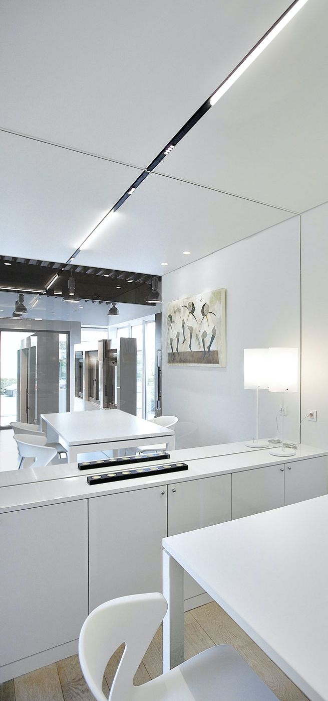 Modulo is a magnetic, LED track system in extruded aluminium with a range of versatile fittings available. The track is available in 2m lengths and can be interconnected via a connecting plate to form a recessed, surface mounted or pendant system. The power supply is remote.