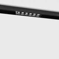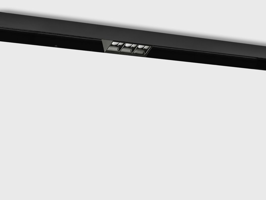 Modulo is a magnetic, LED track system in extruded aluminium with a range of versatile fittings available. The track is available in 2m lengths and can be interconnected via a connecting plate to form a recessed, surface mounted or pendant system. The power supply is remote.