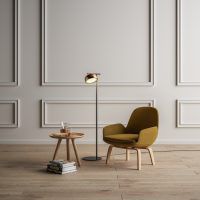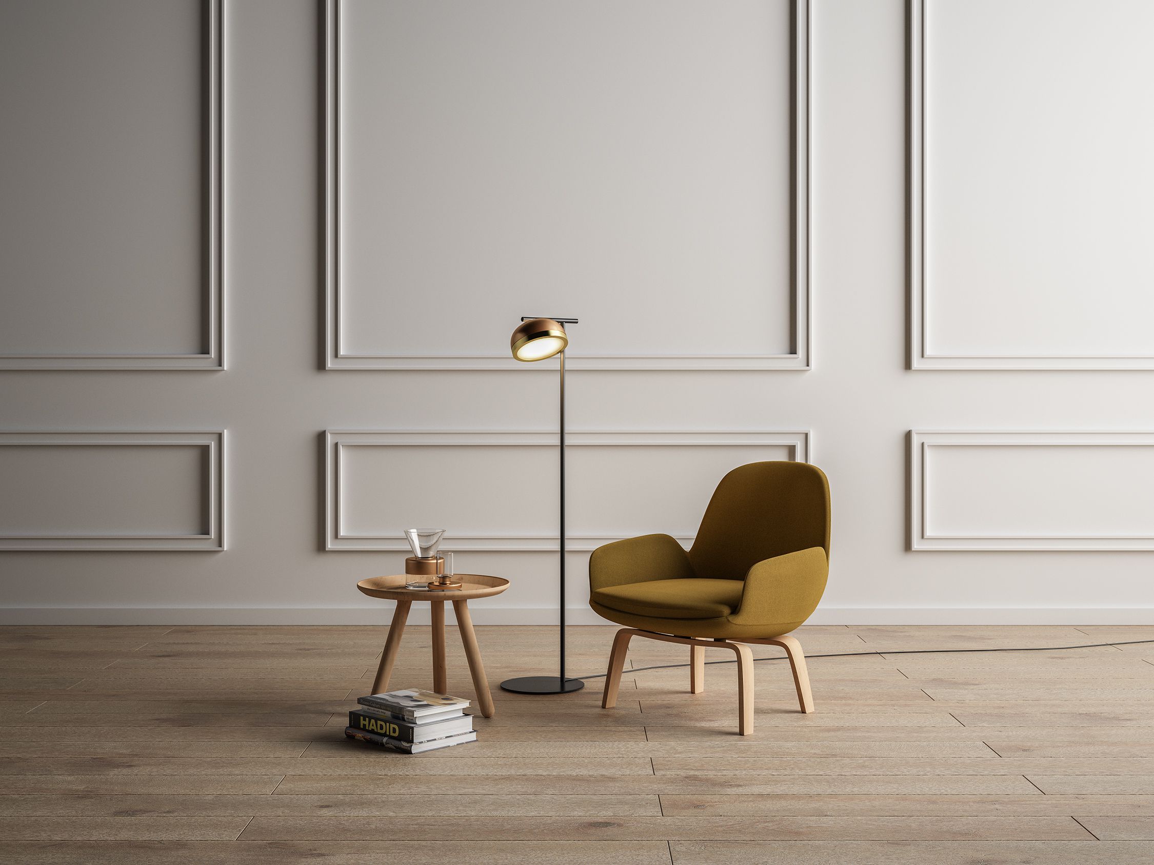 Collection of contemporary hanging, wall, floor, table, side and ceiling lamps with a painted dome and ring either painted or finished with brushed brass or galvanic copper. The bright diamond screen is made of plexiglass to better spread light out. The collection presents lamps available in three sizes for single-unit or dynamic compositions. These lamps are very versatile and fit any kind of setting, thanks to their simple shape yet rich materials.