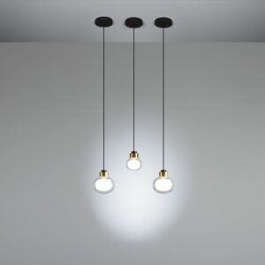 The Nabila Pendant Lamp embodies 1950s-inspired elegance in a modern form. Its double-sided borosilicate glass diffuser casts a refined glow, complemented by a slim metal frame finished with epoxy powder and brushed brass details. Suspended with balance and grace, the Nabila Pendant is ideal for dining rooms, kitchens, or lounge areas, adding sophistication and timeless charm from above.