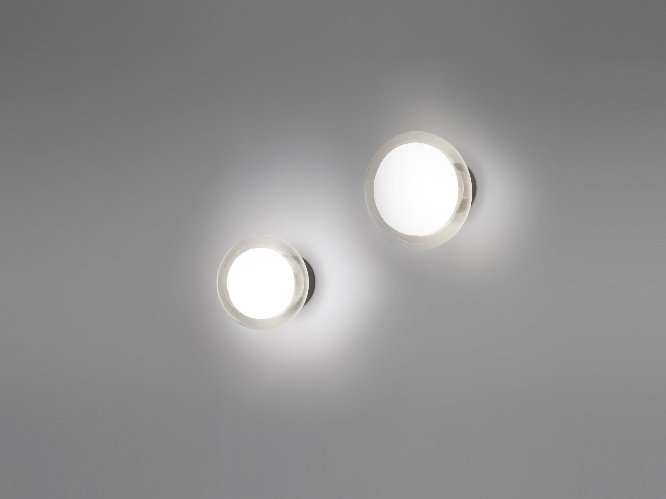 50s inspired collection of elegant and sophisticated lamps representing the detail to enrich any location. A double-sided spherical bright object in borosilicate glass makes these lamps available in different compositions and a structure made by metal coated with epoxy powder enriched with brushed brass details. Different varieties are available for any situation: chandeliers (in three different models) or table lamp, bedside (smaller), floor or wall (available in three different models for single or composite personalized installation). Richness and sobriety all in one single element.