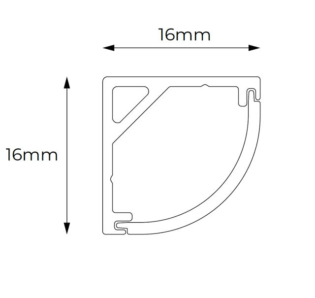 Options: Corner profile – 10mm x 10mm (10W/m), 16mm x 16mm (10W/m); 30mm x 30mm (20W/m)