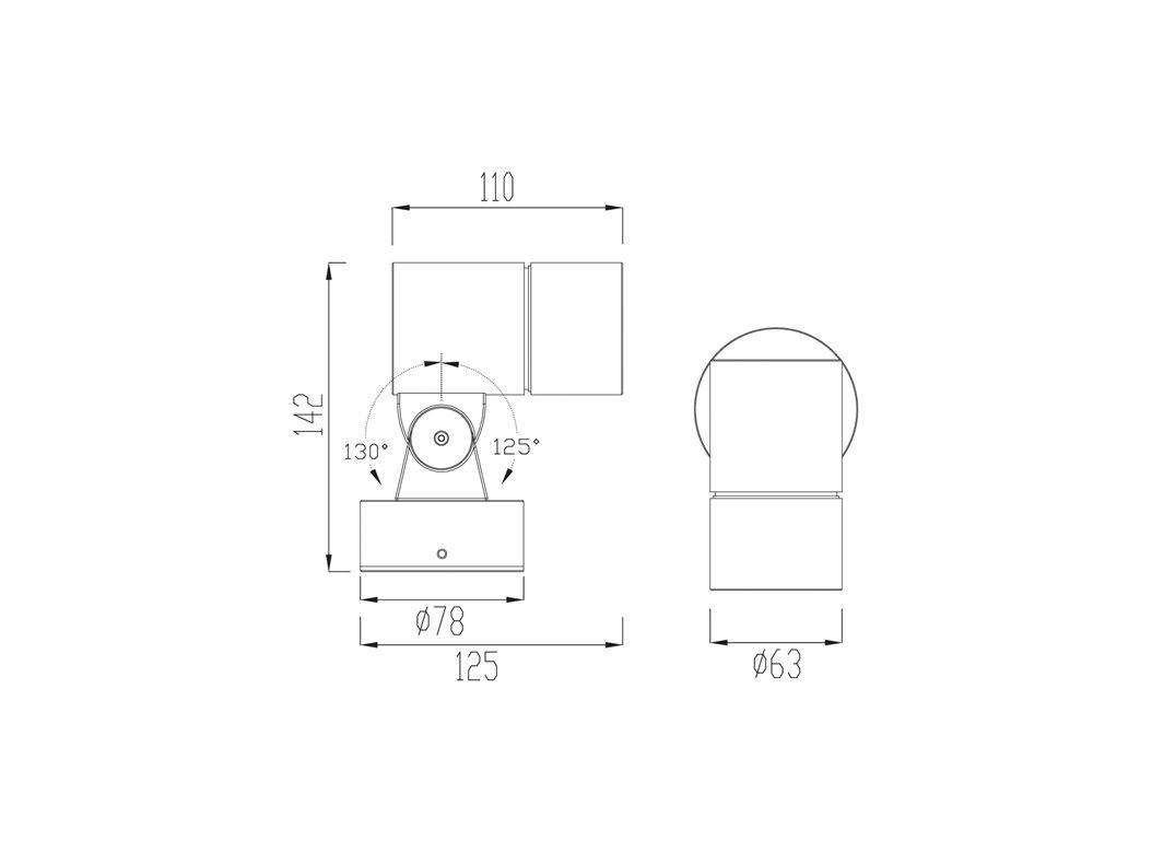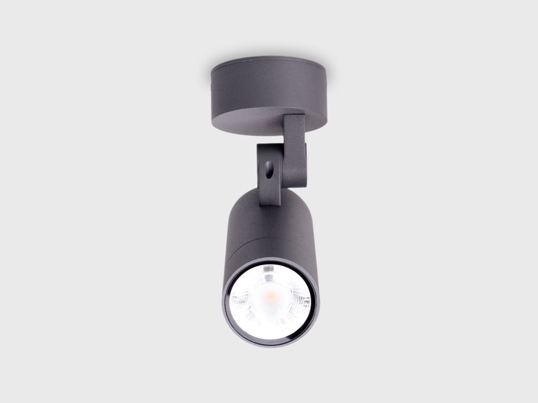 Spy is a surface mounted, adjustable luminaire providing direct light. The body is constructed of aluminium and the projector head has a GU10 base for use with a standard GU10 lamp or the Smart Wi-Fi Tunable White-Colour Changing Globe.