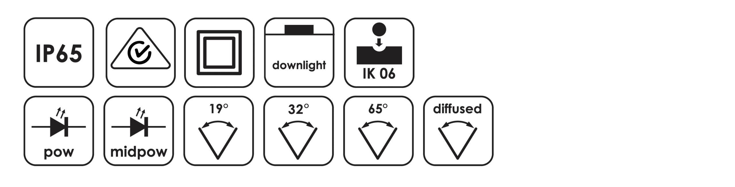 Power LED with a transparent etched glass diffuser, ideal for commercial and high-traffic environments.