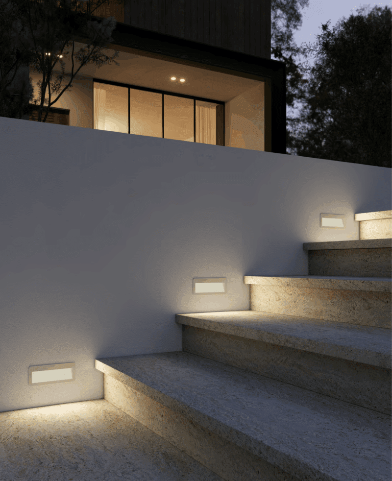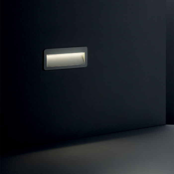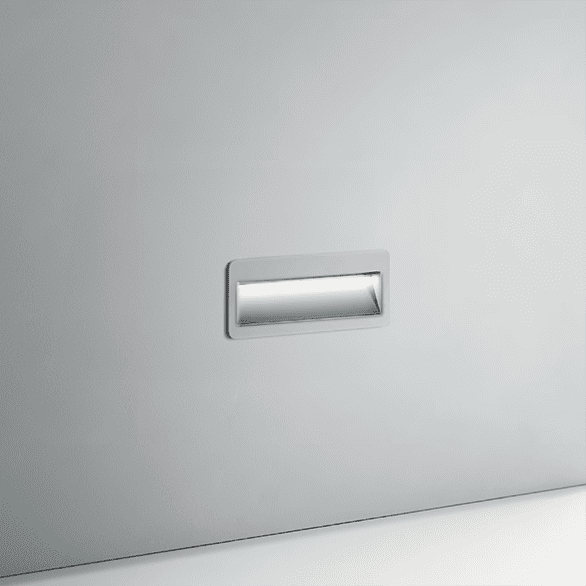 A sleek, rectangular step light crafted from die-cast aluminium, Tasca is designed for recessed wall applications. It delivers a gentle, downward grazing light, ideal for subtle architectural illumination in corridors, walkways, fairways, staircases, and walls—both indoors and out. Finished with a corrosion-resistant treatment suitable for marine environments and a durable polyester powder coating for direct sunlight, Tasca is available in five standard colours.
