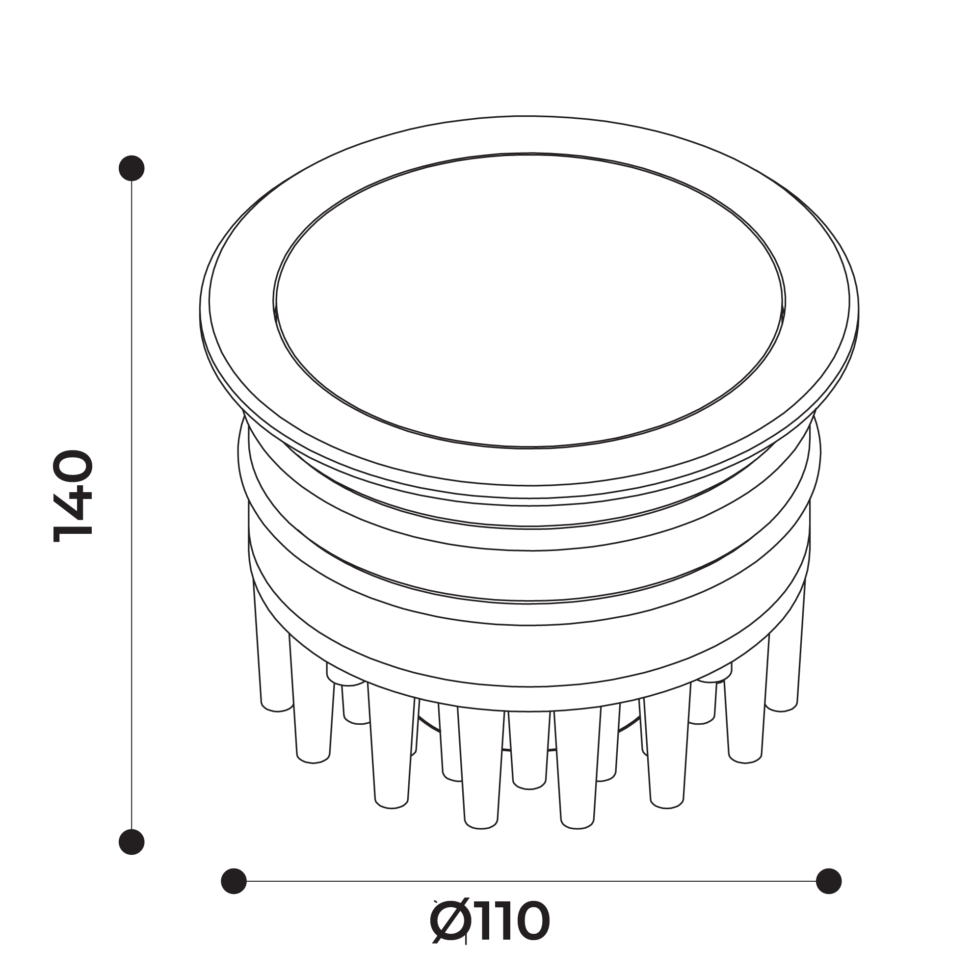Zero is a compact, recessed luminaire available in four sizes—Ø45mm, Ø65mm, Ø85mm, and Ø110mm—designed for ground or wall installation in both residential and commercial outdoor settings.