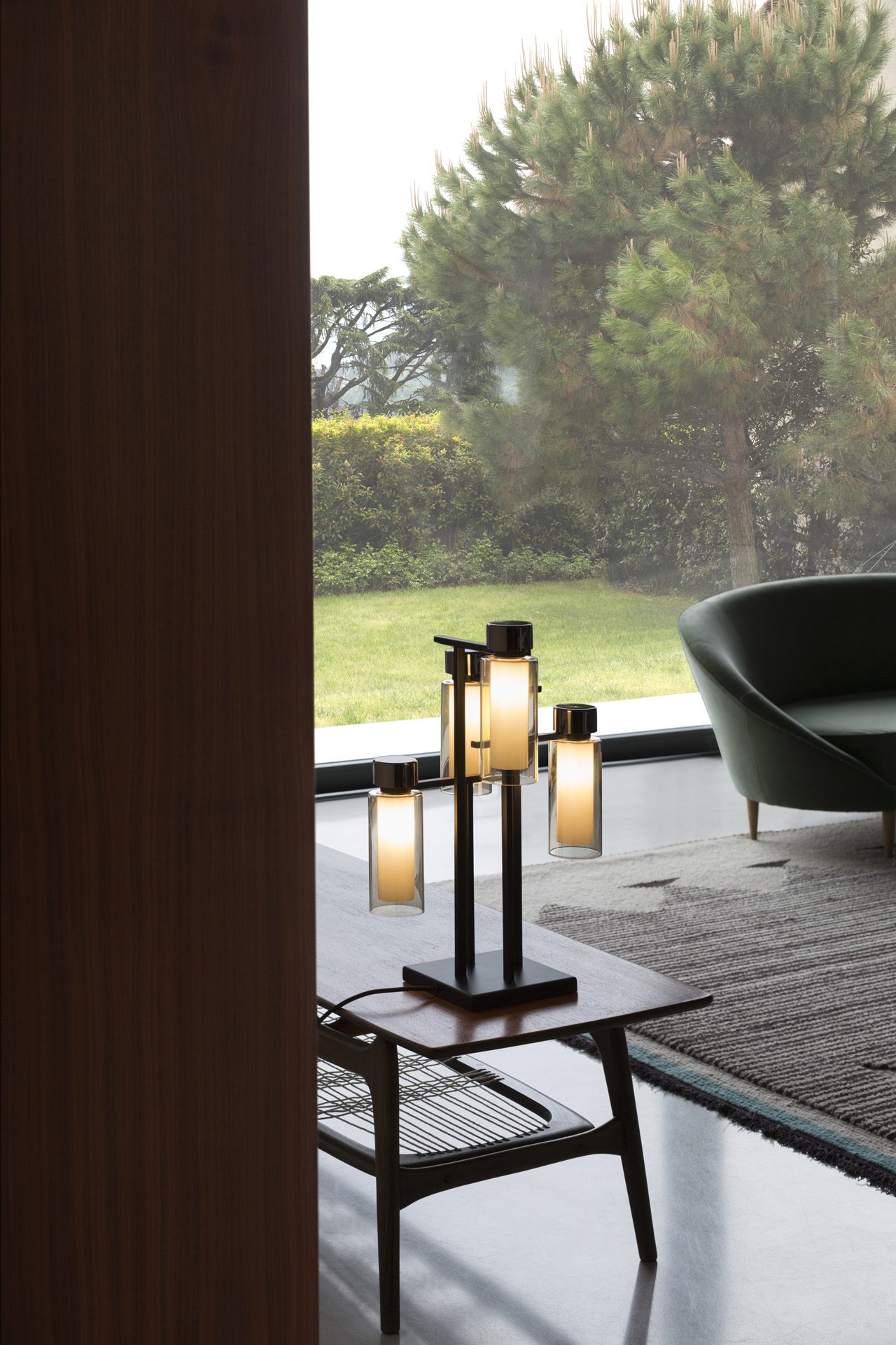 TOOY Osman is a family of lamps featuring a rational design with metallic details and double-wall cylindrical diffusers for harmonious light diffusion. The orthogonal structure and balanced proportions provide a strong avant-garde feel while maintaining a formal, familiar, and refined appearance.