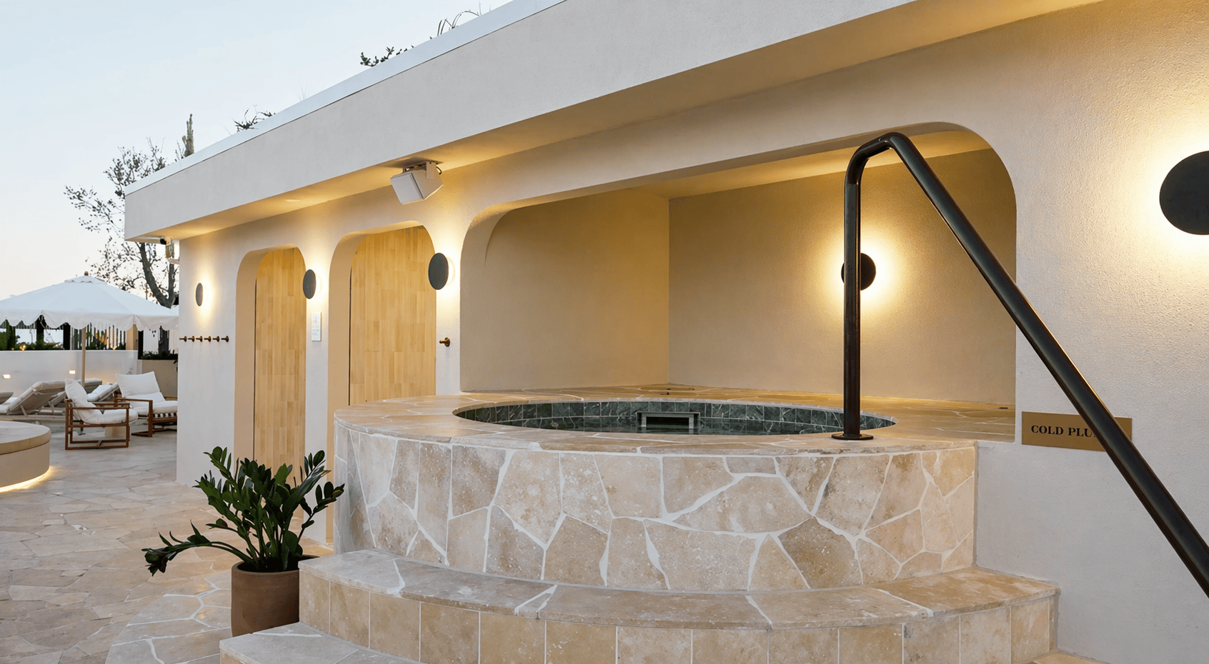 Across hydrotherapy and recovery zones, a layered approach creates a consistent, low-glare environment. Soft, indirect illumination is used to reduce visual noise, allowing users to transition between spaces with ease.