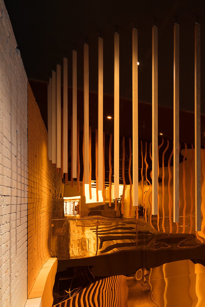Hanging timber battens and mirrored surfaces are supported by our Binario spotlights, whilst the mezzanine features our profilo pendants. The consulting rooms in vibrant pink feature our minimalist Matita downlights.